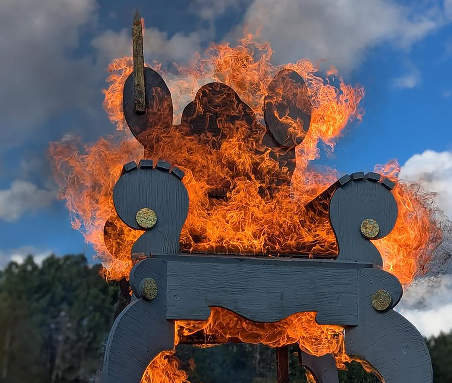 Sommaren 2025 avslutades dock den långa resan med utställningen Blått blod i ETC Solpark, Katrineholm, organiserad i samarbete med Konstfrämjandet Kraft. Genom skulpturer, videoperformance och en målning av fadern utgjorde Moods utställning i ETC Solpark inte bara en berättelse om en far och en son, utan fungerade också som en spegel mot vårt samhälle idag. “Blått blod” syftar på makt och härkomst, och bygger på föreställningen om att tillhöra en utvald ätt. Idén om att genom sin kropp stå över andra och därmed ha rätt att leda står i kontrast till idén om ett demokratiskt samhälle där alla medborgare är lika mycket värda. Under utställningens finissage 13 september 2025 abdikerade slutligen kung Alexander, och lät bränna upp sin tron.