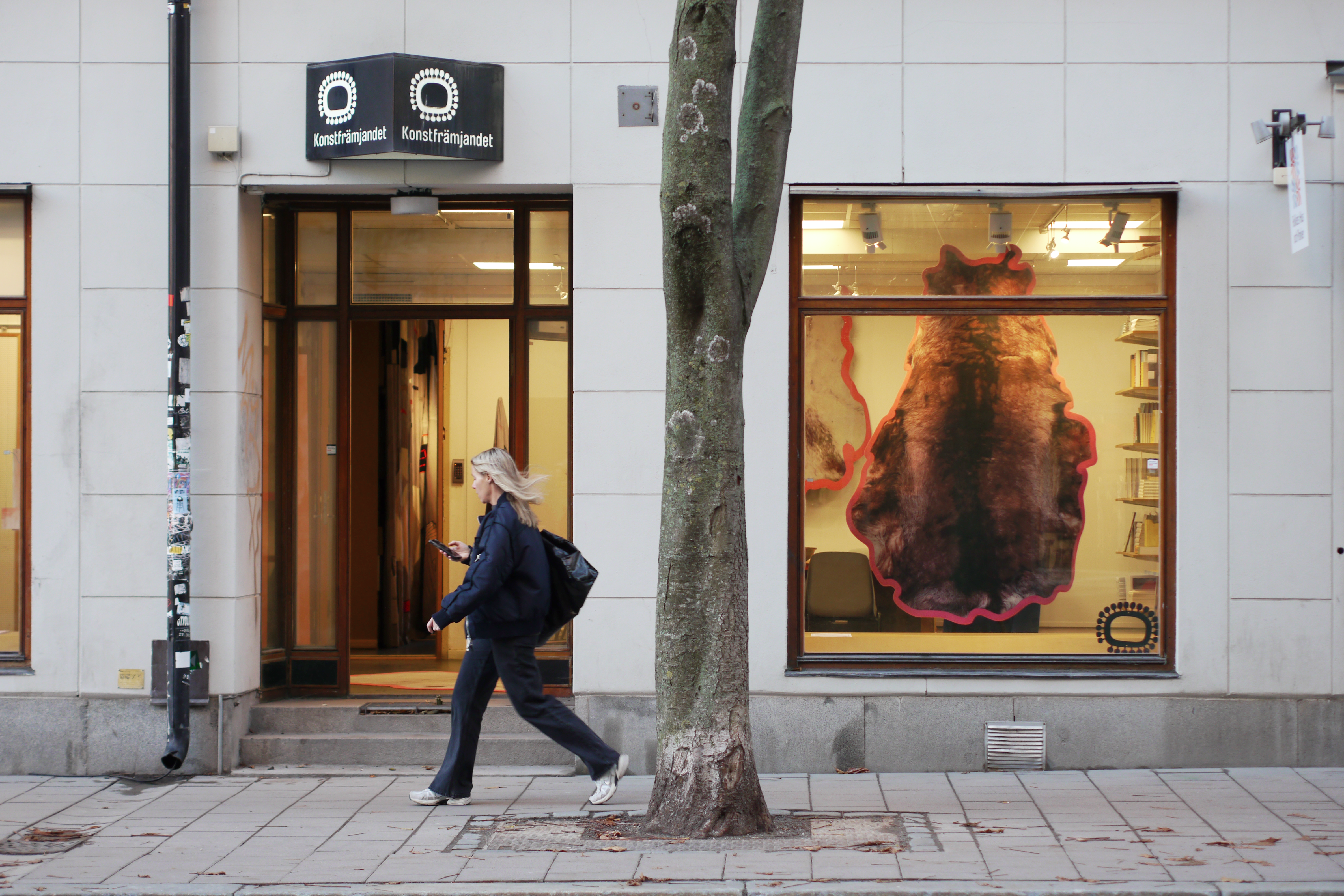 På Konstfrämjandets nationella kansli i Stockholm, mitt på centrala Södermalm, arbetar en liten grupp för att möjliggöra och stötta distriktens arbete. Ett av de sätt vi valt att göra detta på är att delvis upplåta våra lokaler. Med start hösten 2024 inleddes därför en serie gästutställningar, där distrikten tar med sig och visar upp delar av sina projekt och verkamheter från olika platser i landet i vårt skyltfönster ut mot Swedenborgsgatan och Mariatorget. Satsningen syftar till att skapa utrymme för nya möten mellan distrikten och publik på annan ort.